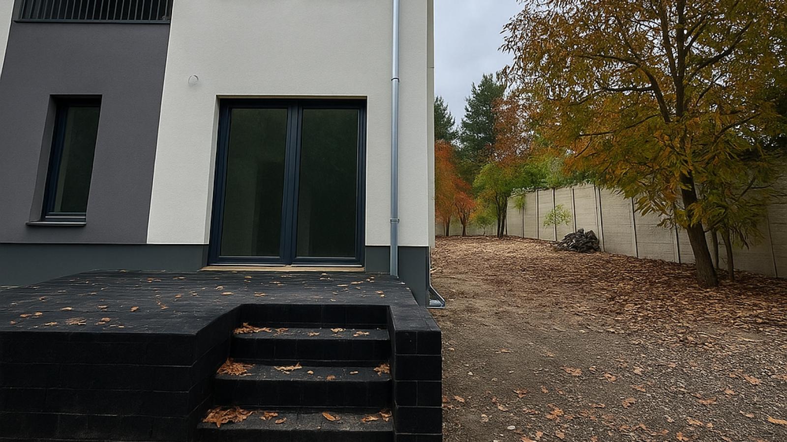 - Ogrodzenie: Estetyczne ogrodzenie wyznaczające granice działki, zapewniające prywatność.